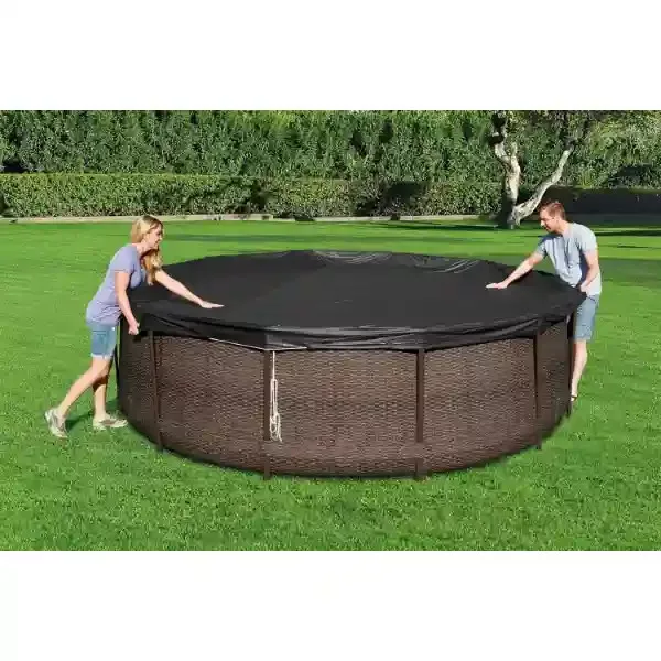 A Bestway medencetakarók távol tartják a leveleket, törmelékeket, szennyeződéseket és rovarokat. A vízelvezető nyílások megakadályozzák a víz felgyülemlését a takaró felületén. Tartós és ellenálló anyagból készült. Ezt a modellt 366 cm átmérőjű, fémvázas, vagy puhafalú kerek medencékhez tervezték. A takaró szélének a medencéhez való szorítása a benne lévő madzag segítségével lehetséges.