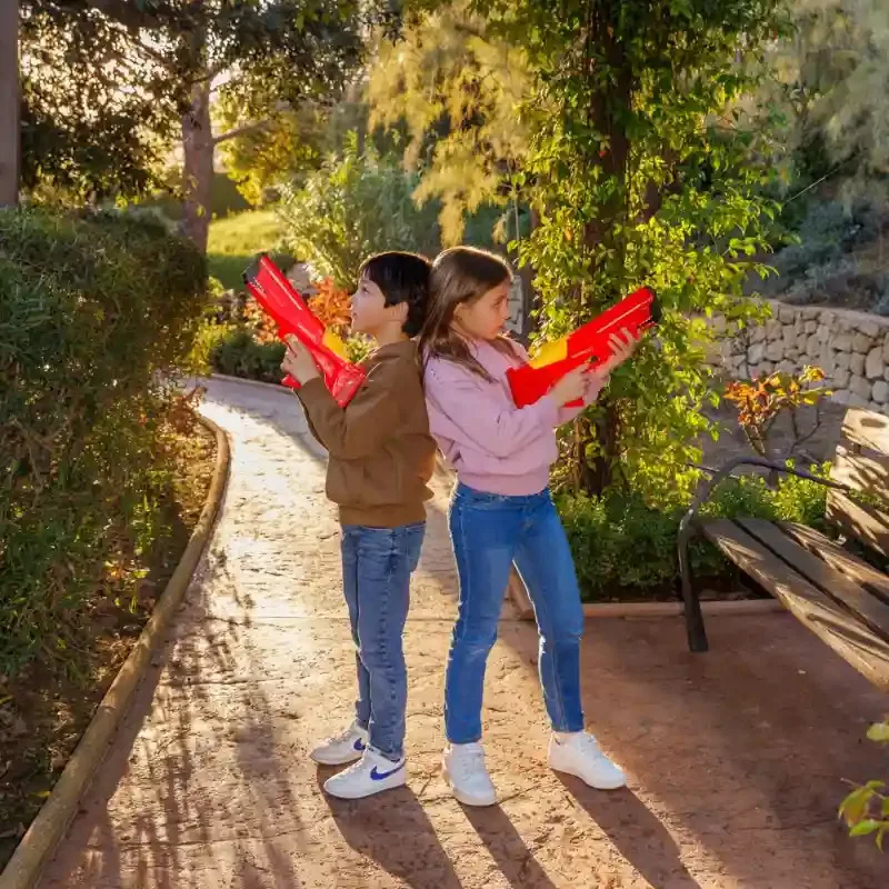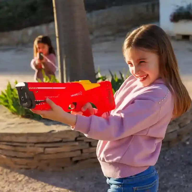 Ez a látványos, cápát formázó elektromos vízipisztoly garantáltan feldobja a nyári vízicsatákat, és új szintre emeli a szabadtéri játékélményt. A motoros működésnek köszönhetően egyetlen gombnyomással folyamatos vízsugarat biztosít, így nincs szükség pumpálásra, a játék pedig még kényelmesebb és izgalmasabb lesz. A nagy teljesítményű rendszer akár 8–10 méteres hatótávolságot is elér, így könnyedén célba vehetők a „ellenfelek” akár nagyobb távolságból is. A 0,55 literes víztartály lehetővé teszi a hosszú játékot. 6 éves kortól ajánlott, és tökéletes választás minden gyermek számára, aki szereti az akciódús, vidám nyári játékokat és a felejthetetlen vízicsatákat.