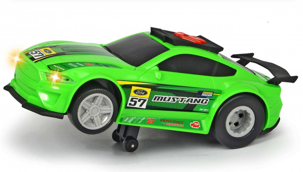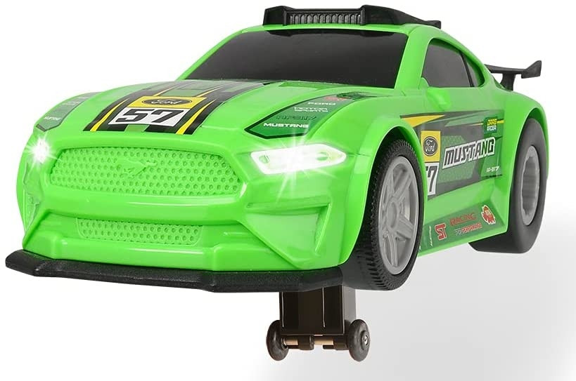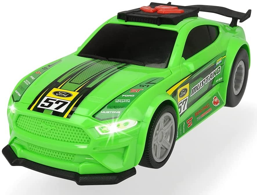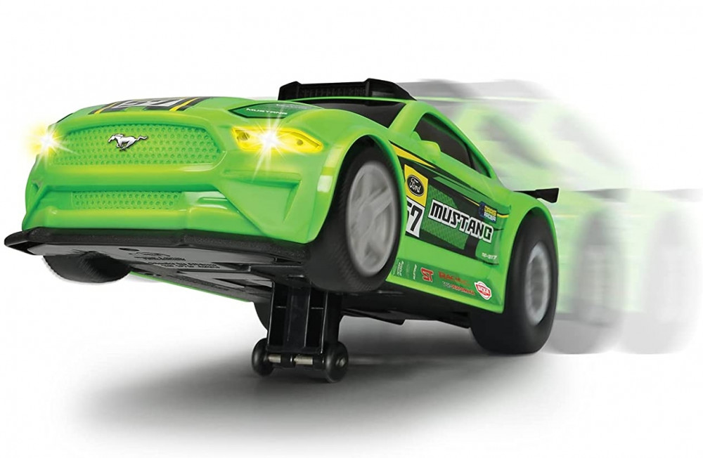 A Ford Mustang versenyautó egy különleges, fény- és hangeffektekkel rendelkező műanyag játékautó. A 25cm-es autó motorizált kerekekkel rendelkezik. Az autó tetején lévő kisebb gombokat megnyomva különböző hangeffektek hallhatók, illetve az autó első lámpái világítanak. Ha a tetőn lévő nagyobb gombot nyomjuk meg, akkor a motorizált hátsó keréknek köszönhetően a versenyautó fény- és hangeffektekkel automatikusan elindul, valamint az eleje is felemelkedik. A kocsi 2db AA elemmel működik, amit a csomagolás tartalmaz.