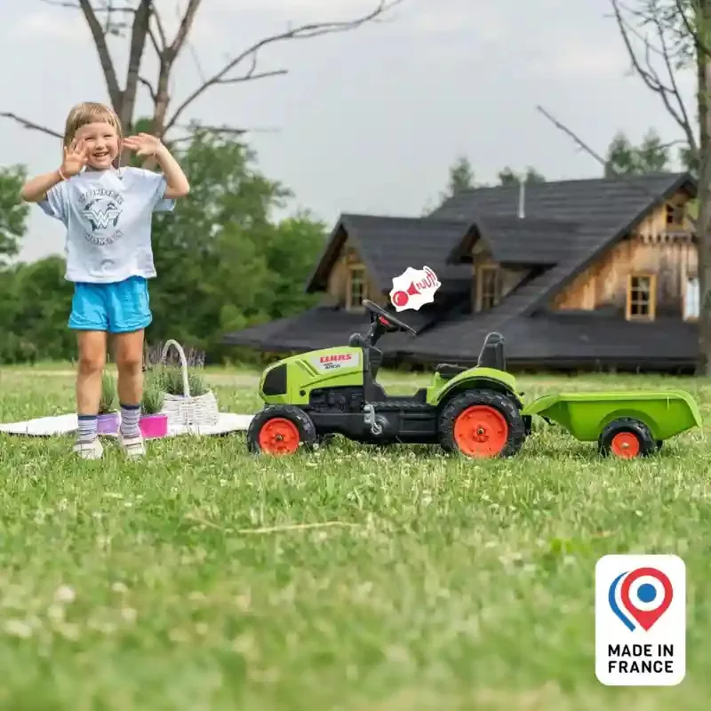 Falk Claas Arion 410 XL pedálos traktor utánfutóval