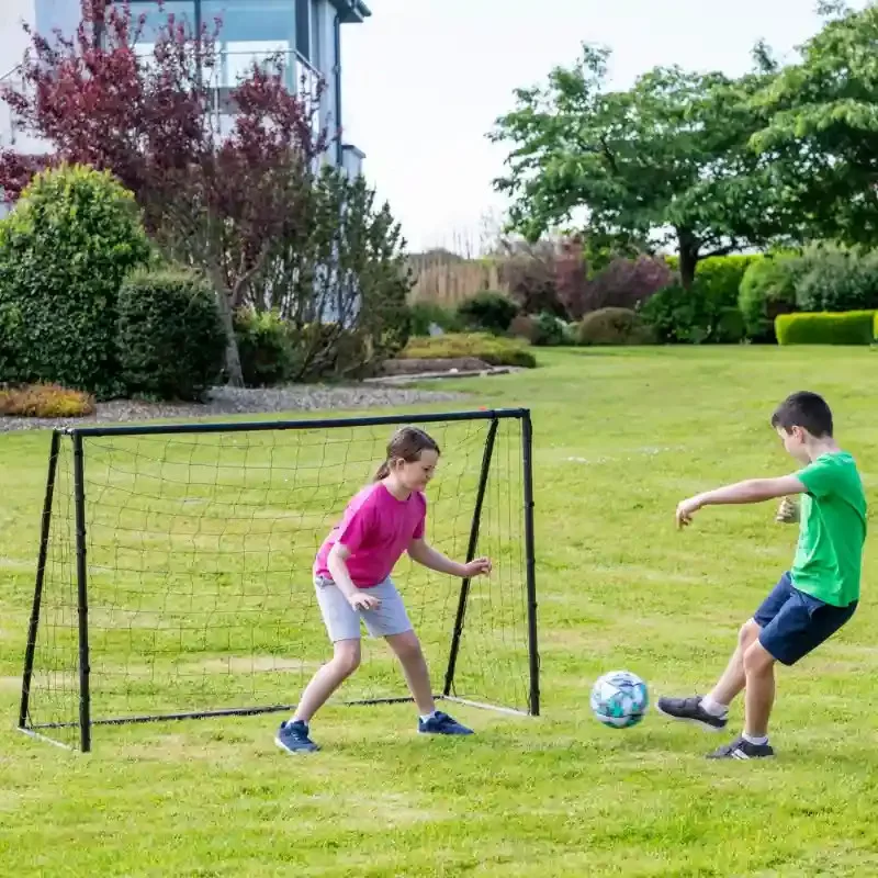Ez a masszív fém focikapu ideális választás minden fiatal futballrajongó számára, aki szeretne gyakorolni és fejleszteni a tudását a szabadban. A tartós acélszerkezet biztosítja a stabilitást és a hosszú élettartamot, így a kapu ellenáll az intenzív játéknak és a változó időjárási körülményeknek is. A focikapu nagy előnye az egyszerű összeszerelés, amelyhez nincs szükség szerszámokra, így gyorsan felállítható a kertben vagy a pályán. Praktikus megoldás szülőknek, edzőknek és gyerekeknek egyaránt, hiszen percek alatt használatra kész. A kapu mérete ideális a fiatal játékosok számára, elegendő teret biztosít a gyakorláshoz és a játékhoz. A stabil kialakítás lehetővé teszi, hogy a gyerekek magabiztosan célozzanak és minél több gólt szerezzenek, miközben fejlődik a mozgáskoordinációjuk és a sport iránti lelkesedésük. 3 éves kortól ajánlott, és tökéletes választás minden olyan gyermek számára, aki aktívan szeretné eltölteni a szabadidejét és élvezi a focizás örömét.