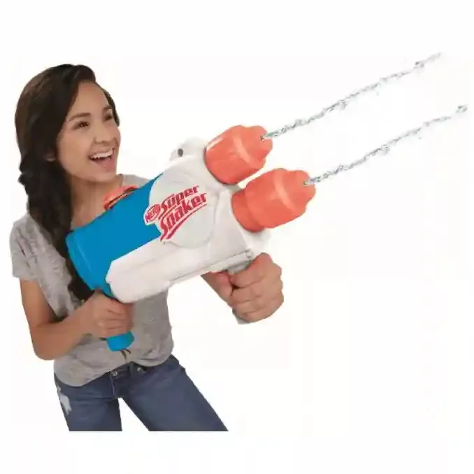 A Nerf Super Soaker Barracuda duplacsövű vízipisztoly tökéletes szabadtéri játék gyerekeknek és felnőtteknek egyaránt. A fegyver tartályát a nyíláson keresztül feltöltve, majd a cső alján lévő fogantyút előre-hátra pumpálva indulhat a vízi csata.