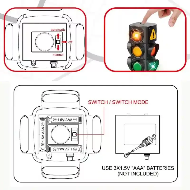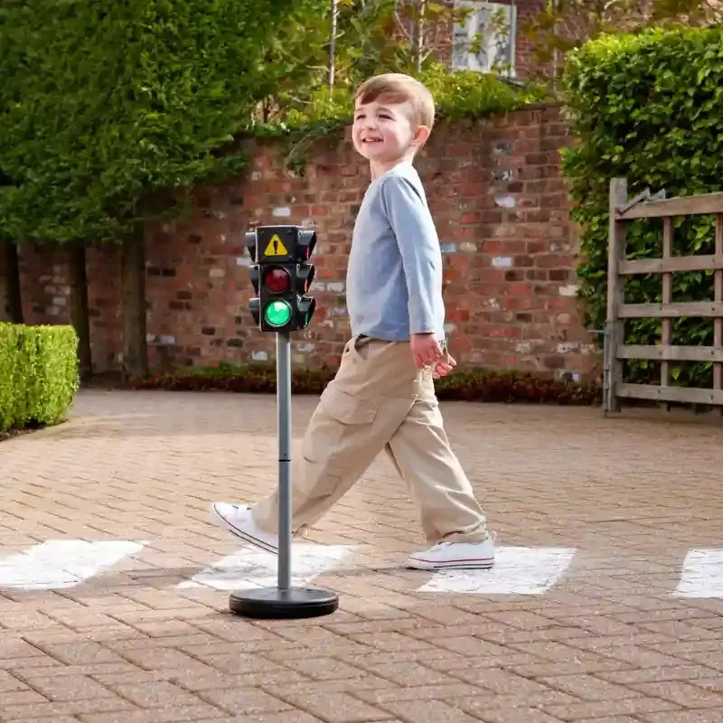Ez az interaktív közlekedési lámpa játékos formában ismerteti meg a gyerekeket a közlekedési szabályokkal, miközben izgalmas szerepjátékokra ad lehetőséget. A piros, sárga és zöld fények valósághű működése segít megérteni a jelzések jelentését, így a tanulás és a szórakozás egyszerre valósul meg. A lámpa egyszerűen kezelhető gombokkal irányítható, amelyekkel a gyerekek maguk válthatják a fényeket, vagy akár automatikus üzemmódot is beállíthatnak. A látványos fényhatások még élethűbbé teszik a játékot, így könnyen kialakíthatók különböző közlekedési helyzetek játékautókkal, biciklikkel vagy más kiegészítőkkel. A tartós, gyermekbarát anyagból készült kialakítás hosszú élettartamot biztosít, miközben biztonságos használatot nyújt. A vízzel vagy homokkal tölthető talapzat extra stabilitást ad, így a lámpa biztosan a helyén marad játék közben. A kb. 71 cm magas közlekedési lámpa ideális méretű a kisebbek számára, és beltéren vagy kültéren egyaránt használható. A működéshez 3 darab AAA elem szükséges, amelyeket a csomagolás nem tartalmaz. 3 éves kortól ajánlott, és tökéletes választás minden gyermek számára, aki szeret szerepjátékokon keresztül tanulni és felfedezni a világot.