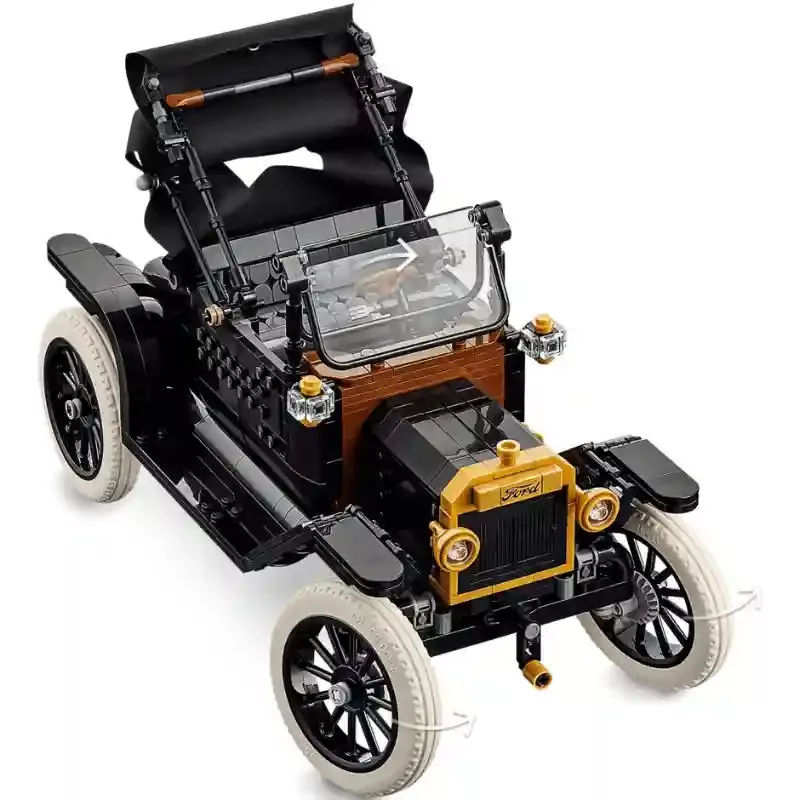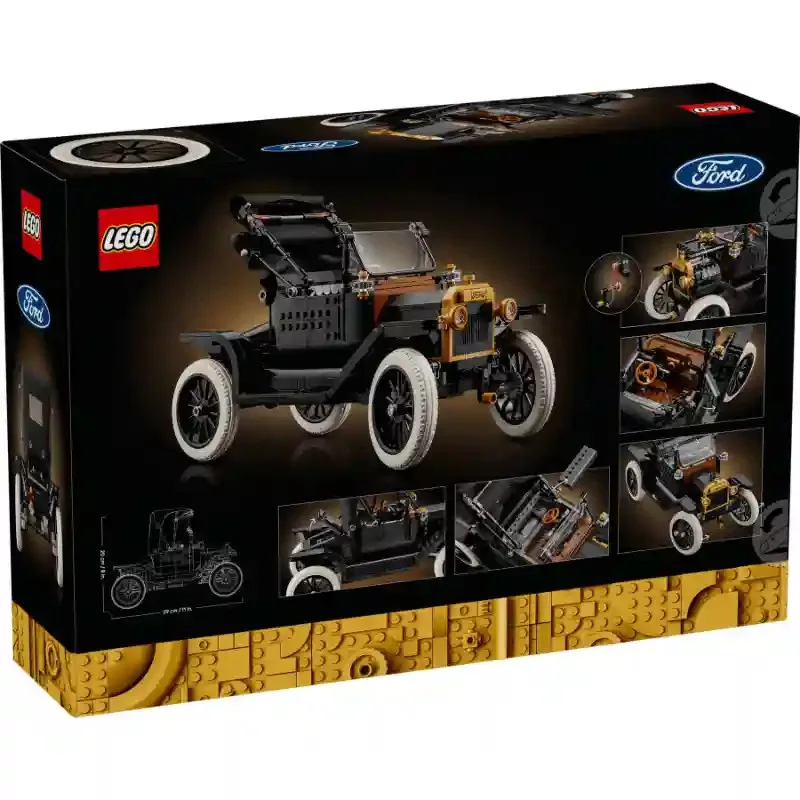 Indulj nosztalgikus utazásra az autózás hajnalába a Lego Icons 11376 Ford Model T autó készlettel! Ez a 18 éves kortól ajánlott, felnőtteknek szánt építőkészlet a klasszikus amerikai autógyártás egyik legismertebb ikonját idézi meg lenyűgöző kidolgozással. A modell hűen visszaadja az 1910-es évek legendás járművét: fényes fekete karosszéria aranyszínű díszítésekkel, lehajtható vászontetővel és magas, küllős kerekekkel, keskeny fehér gumiabroncsokkal. Az aprólékos részletek nemcsak látványosak, hanem funkcionálisak is. A tető lehajtható, az osztott szélvédő lenyitható, a motorháztető mindkét oldalról felnyitható, így betekintést nyerhetsz a motorba. A kurbli elforgatásával megmozdul a ventilátor, az ülés felemelésével pedig hozzáférhetsz az üzemanyagtartályhoz – igazi mérnöki élmény minden autórajongónak. A kész modell elegáns dísztárgyként is megállja a helyét otthon vagy az irodában, és kiváló ajándék születésnapra, karácsonyra vagy bármilyen különleges alkalomra mindazoknak, akik rajonganak a klasszikus amerikai autókért.