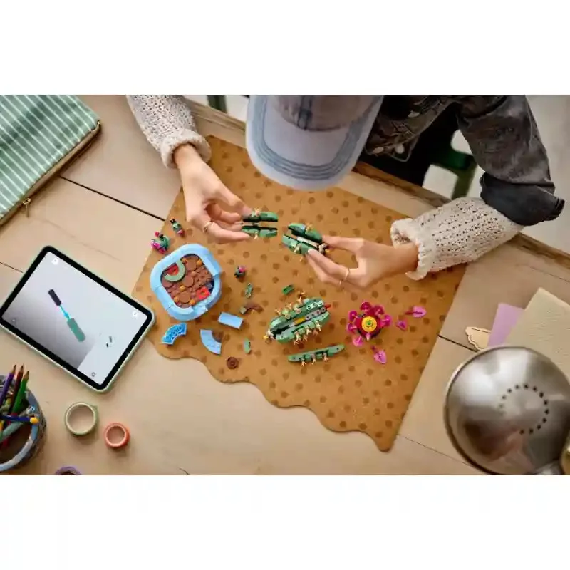 Lepd meg a fiatal növénykedvelőket a 9 éves és idősebb gyerekek számára készült LEGO® Botanicals Virágzó kaktusz (11509) építőkészlettel! Részletgazdag, így a lányok és fiúk is jól szórakozhatnak a klassz kaktuszos dekorációk elkészítése során. A gyerekek kreativitása csak úgy virágzik majd, miközben megépítik a 2 kaktuszmodellt! A nagyobb LEGO kaktusz teljes virágzásban van, a tetején rózsaszín virággal és a sárga közepével, míg a kisebb LEGO kaktusz különböző növekedési stádiumban lévő rózsaszín rügyekkel rendelkezik. A kaktuszok zöld színűek, és mindkettő pasztellkék virágcserépben van elhelyezve, így a gyerekek könnyen kiállíthatják őket a hálószobájukban vagy otthonukban, miután elkészítették őket. Ez a LEGO Botanicals építőkészlet remek ajándék lányoknak és fiúknak születésnapra és más különleges alkalmakra, valamint a természet kedvelőinek, minden korosztályból. A készlet a LEGO Builder appban is elérhető, ahol a gyerekek felnagyíthatják és elforgathatják az építményeiket, valamint nyomon követhetik az előrehaladásukat.