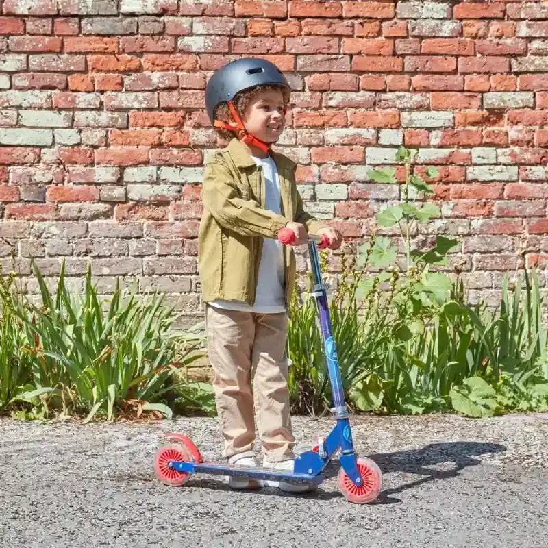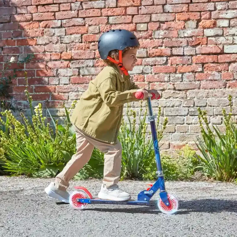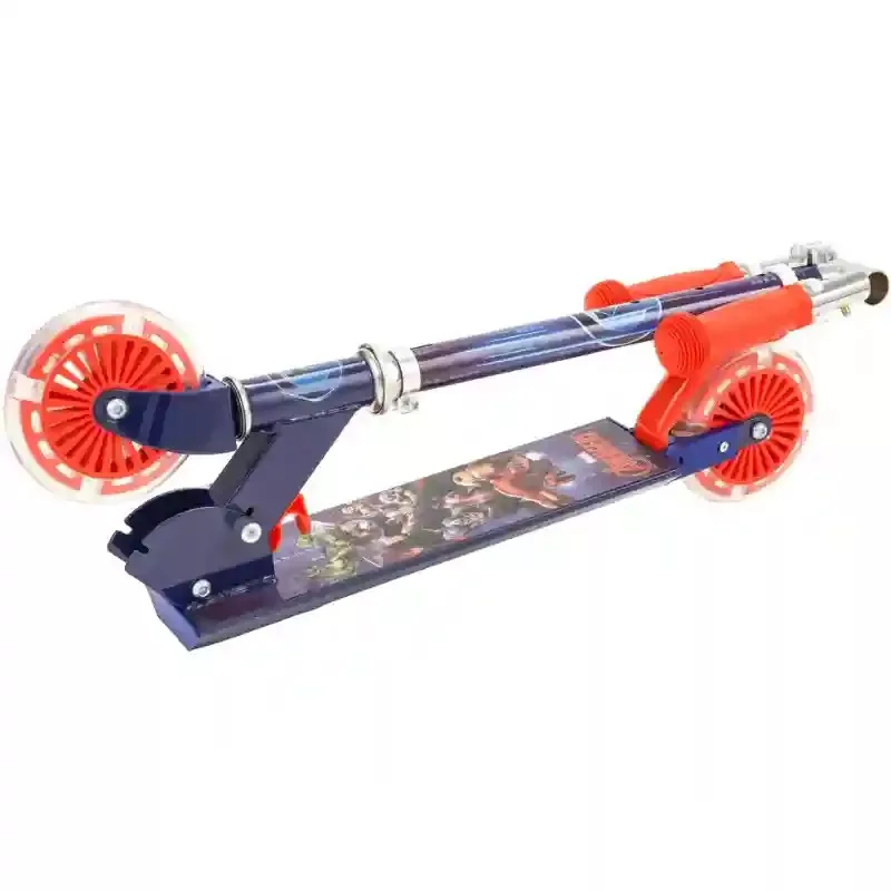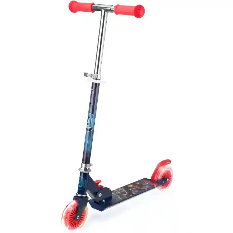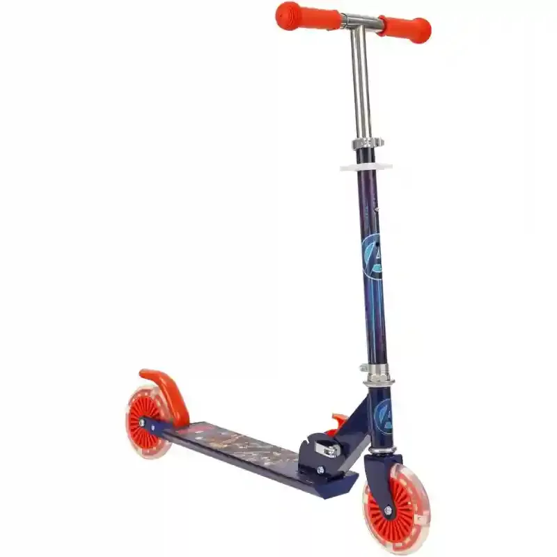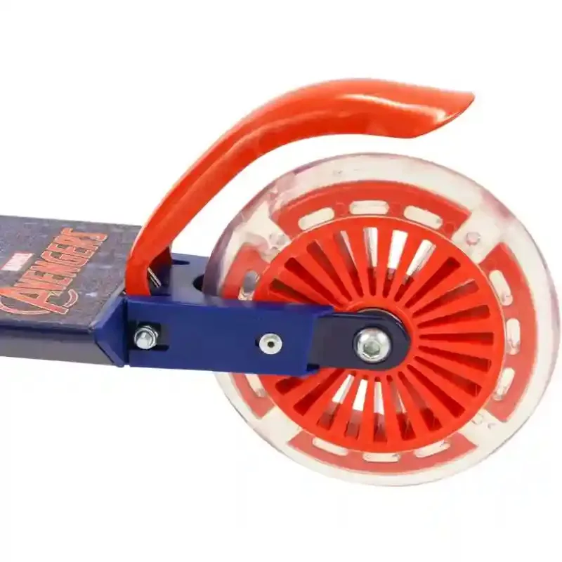 A Marvel Bosszúállók (Avengers) roller igazi kalandra hívja a gyerekeket. A kék–narancs színű dizájn a szuperhősök világát idézi, így a roller nemcsak játék, hanem egy igazi akcióeszköznek is tűnik. Ideális azoknak a gyerekeknek, akik már magabiztosan gurulnak, és készen állnak újabb kalandokra. Csak rá kell állni, elrugaszkodni, és már indulhat is a szuperhősös száguldás. A LED-es kerekek (kb. Ø12 cm) a gurulás hatására világítanak, ami még látványosabbá teszi a haladást. A stabil fellépőfelület biztos tartást ad, a hátsó lábfék pedig gyors és biztonságos megállást tesz lehetővé. Az állítható magasságú kormány (kb. 71-81 cm között) a gyermek növekedéséhez igazítható, így a roller hosszabb ideig is kényelmesen használható. A Marvel Avengers roller a sebességet, az irányíthatóságot és a mozgás örömét ötvözi. Ha a kaland véget ér, a roller gyorsan összecsukható, így könnyen tárolható vagy magunkkal vihető a következő küldetésre.