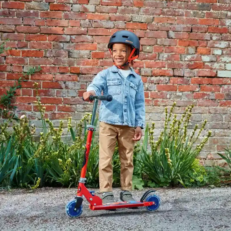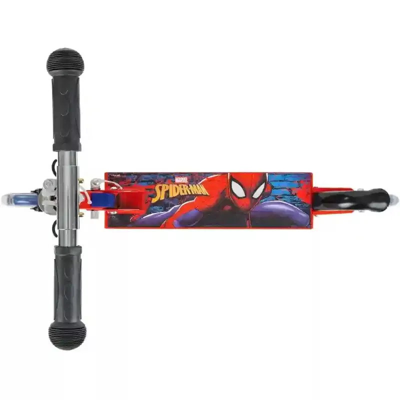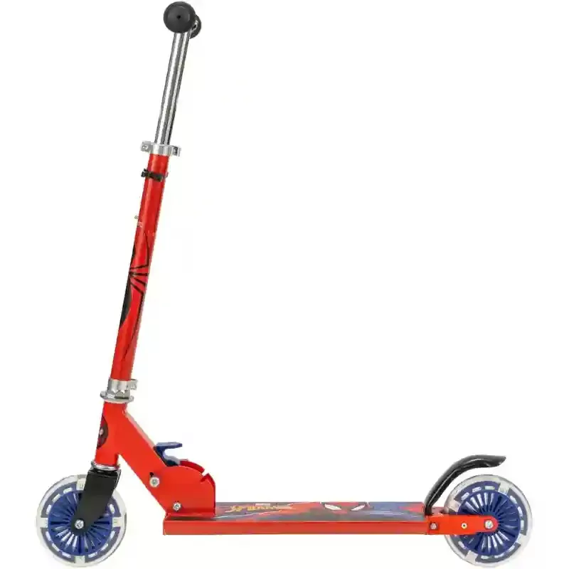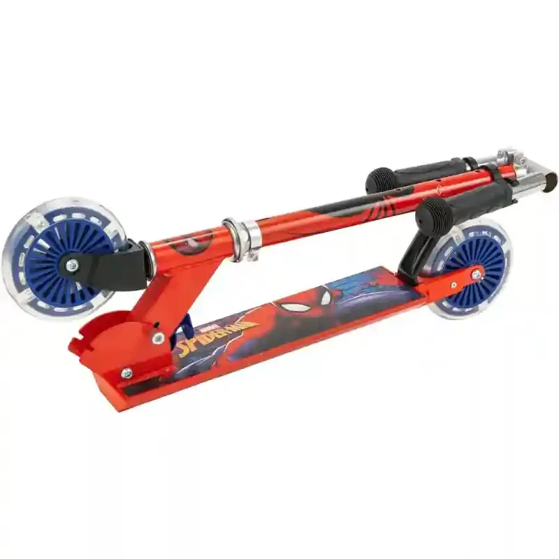 A Marvel Pókember dizájnú kétkerekű roller ideális választás a szabadban aktívan játszó gyerekek számára. Csak fel kell állni rá, elrugaszkodni, és már indulhat is a gurulás a járdán, az udvaron vagy a barátokhoz vezető úton. A látványos Pókember megjelenés még izgalmasabbá teszi a kültéri kalandokat. Az alumínium váz stabil, ugyanakkor könnyű, így a roller egyszerűen irányítható és szükség esetén a gyerekek maguk is könnyen vihetik. Az állítható magasságú kormány (kb. 71-81 cm között) a gyermek növekedéséhez igazítható, így a roller hosszabb ideig kényelmesen használható. A roller könnyen összecsukható, ezért egyszerűen szállítható autóban vagy tárolható otthon a folyosón vagy a szobában. A LED-es kerekek (kb. Ø12 cm) a gurulás hatására világítanak, ami látványos és jól észrevehető. A hátsó lábfék segít a biztonságos és kontrollált megállásban. A Spider-Man stílusú roller így egyszerre kínál mozgást, élményt és praktikus használatot a gyerekeknek.