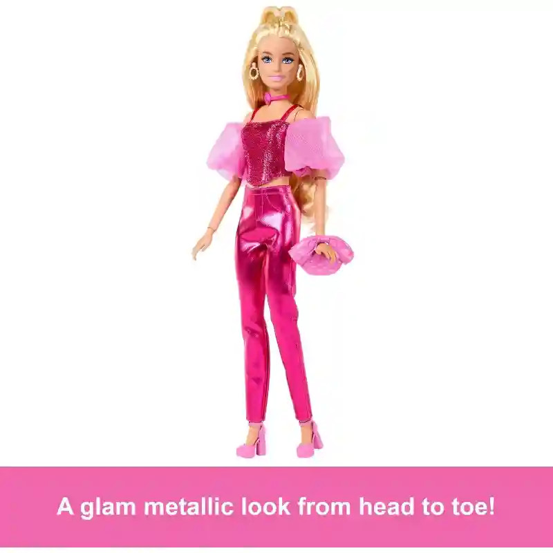Mattel Barbie Deluxe Style baba pink fényes ruhában: a csillogás és elegancia új dimenzióját hozza el a Barbie Deluxe Style baba. Ez a különleges Barbie a fémes ragyogású divat és a modern glamúr megtestesítője – igazi stílusikon minden alkalomra. Barbie tetőtől talpig pinkben ragyog. Fémszínű, csillogó fűzőtopját légies organza ujjak egészítik ki, amelyek finoman omlanak a vállára, tökéletes egyensúlyt teremtve az erő és a nőiesség között. A színben harmonizáló nadrág pedig kifinomult, modern összhatást ad. A baba részben feltűzött frizurája kiemeli az ezüst karika fülbevalókat és a rózsaszín nyakláncot. Öltözékét csillogó karkötők, egy masnis kézitáska és rózsaszín magas sarkú cipő teszik teljessé. A mozgatható ízületeknek köszönhetően Barbie természetes, dinamikus pózokat vehet fel – ideális divatbemutatókhoz, fotózásokhoz vagy kreatív szerepjátékhoz. A Barbie Deluxe Style sorozat minden darabja (külön kaphatók!) új oldalról mutatja meg a fényt, a stílust és az önkifejezést. Ez a változat 4 éves kortól tökéletes ajándék minden kis (és nagy) divatrajongónak, aki imádja a csillogást és a trendeket.