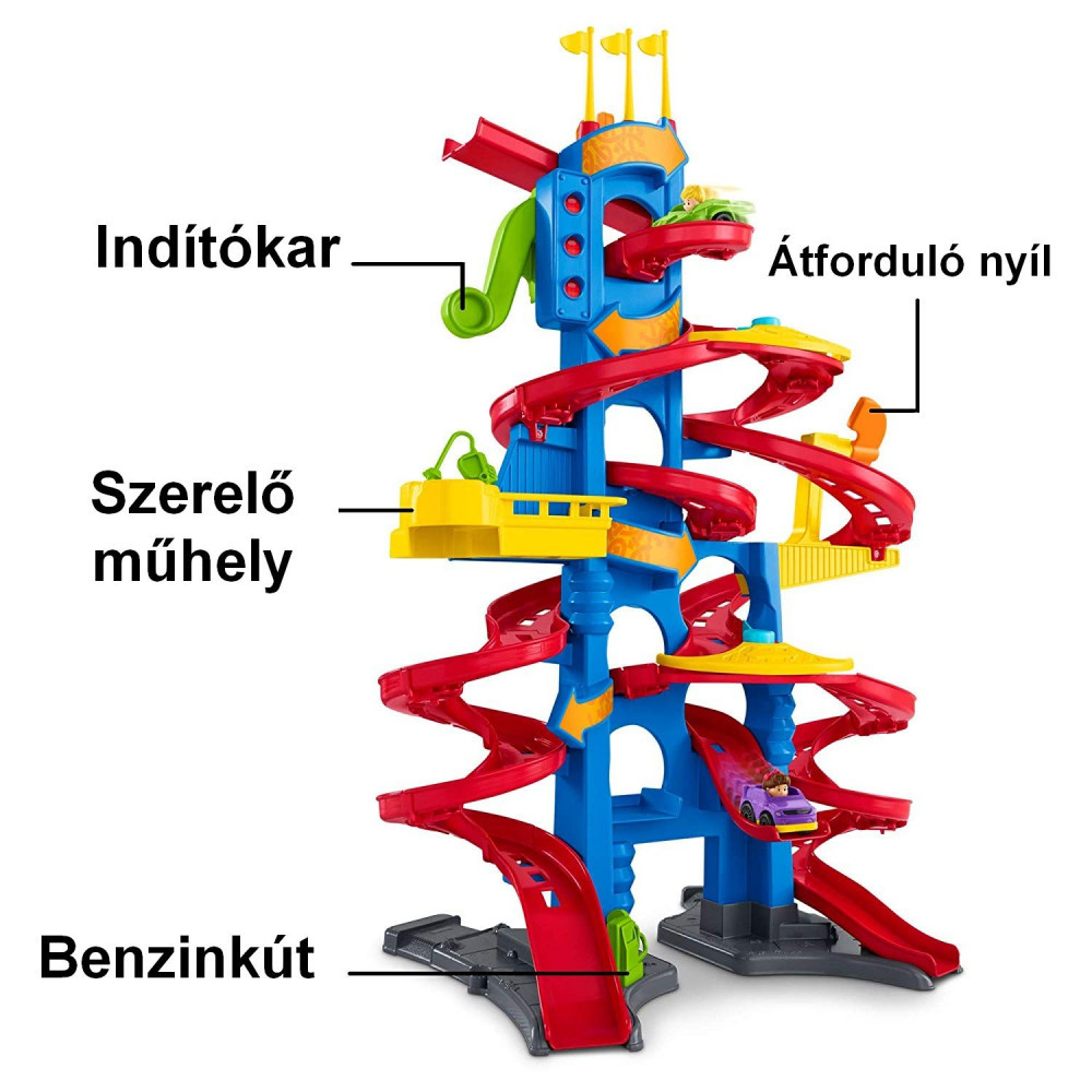 90 cm feletti magasságával a Little People sokemeletes versenypálya az egyik legnagyobb autópálya. Két versenyzónával (többen is játszhatnak együtt), három különféle pályával, versenyhangokkal, valamint szerepjáték állomásokkal ez a versenypálya rengeteg szórakozást kínál a kisgyermekek és barátaik számára. A járművek könnyen kezelhetőek, a szerepjáték állomások, például benzinkút és szerelőműhely ösztönzik a kicsik fantáziáját, hogy történeteket meséljenek egymásnak. Fejleszti a finom motoros készségeket, a kicsi kezeikkel könnyen meg tudják fogni az autókat és már indíthatják is őket a pályán.