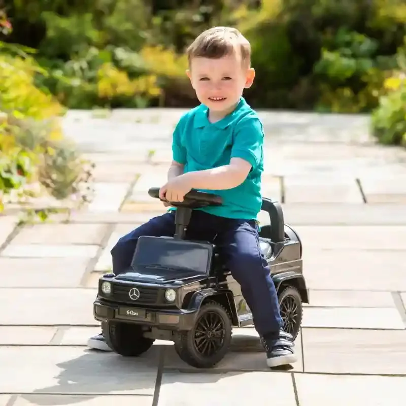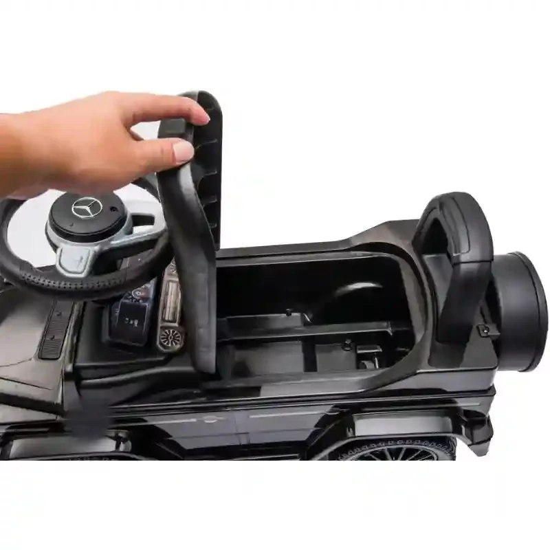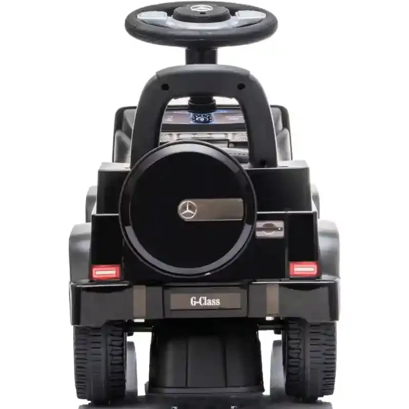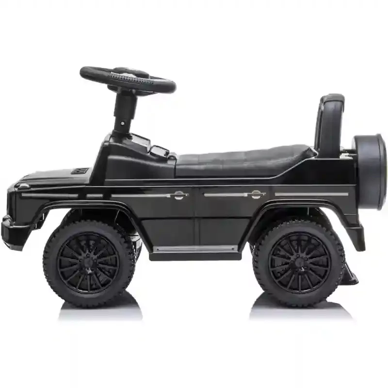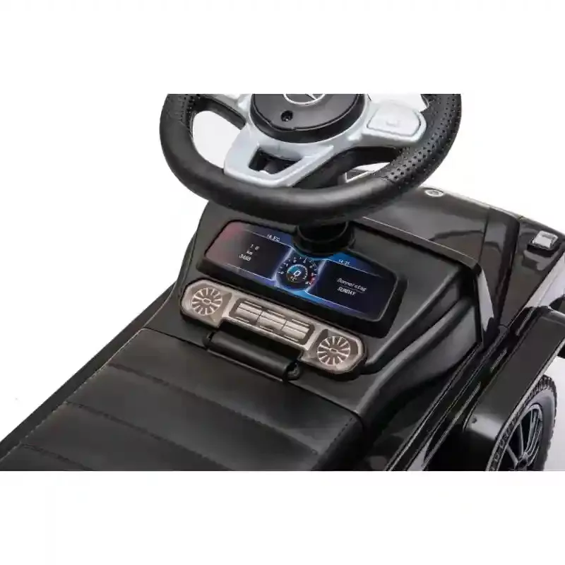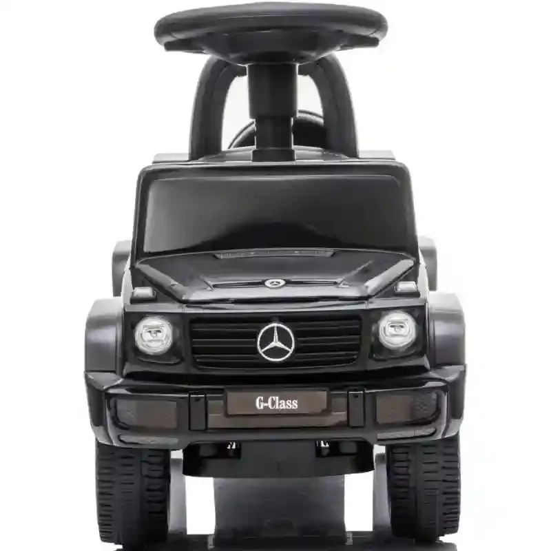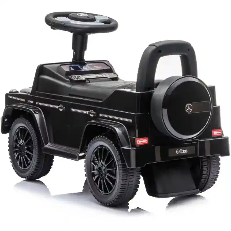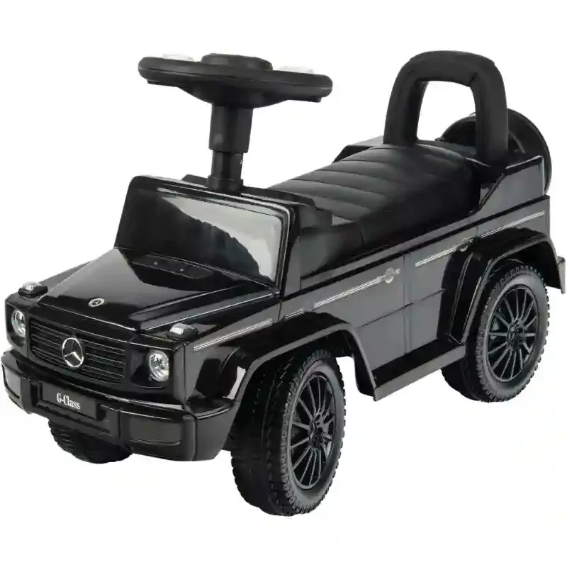 Ez a stílusos, kormányozható fekete bébitaxi a legendás Mercedes-Benz G-osztály G350d terepjáró ihlette megjelenéssel készült, így már a legkisebbek is átélhetik az autózás élményét egy ikonikus modell mini változatával. A részletgazdag kialakítás – a jellegzetes front, a robusztus kerekek és a hátsó pótkerék utánzata – igazán egyedivé teszi ezt a járművet. A könnyen guruló kerekek sima haladást biztosítanak, míg a működő duda még élethűbbé és szórakoztatóbbá teszi a játékot. Az ülés alatt praktikus tárolórekesz található, amelyben a gyerekek kedvenc játékaikat vagy apró kincseiket vihetik magukkal minden „utazásra”. A stabil háttámla egyszerre szolgál támaszként és tolókarként, így a gyermek biztonságosan ülhet rajta, a szülők pedig könnyedén segíthetnek a haladásban. A masszív kialakításnak köszönhetően beltéren és kültéren egyaránt használható. A kb. 69,5 × 29 × 43 cm-es méret ideális a kisebb gyermekek számára, maximális terhelhetősége 25 kg. A duda működéséhez 2 darab AA elem szükséges (nem tartozék). 12 hónapos kortól ajánlott, és tökéletes választás minden kis autórajongó számára, aki szeretné felfedezni a világot saját „Mercedesével”.