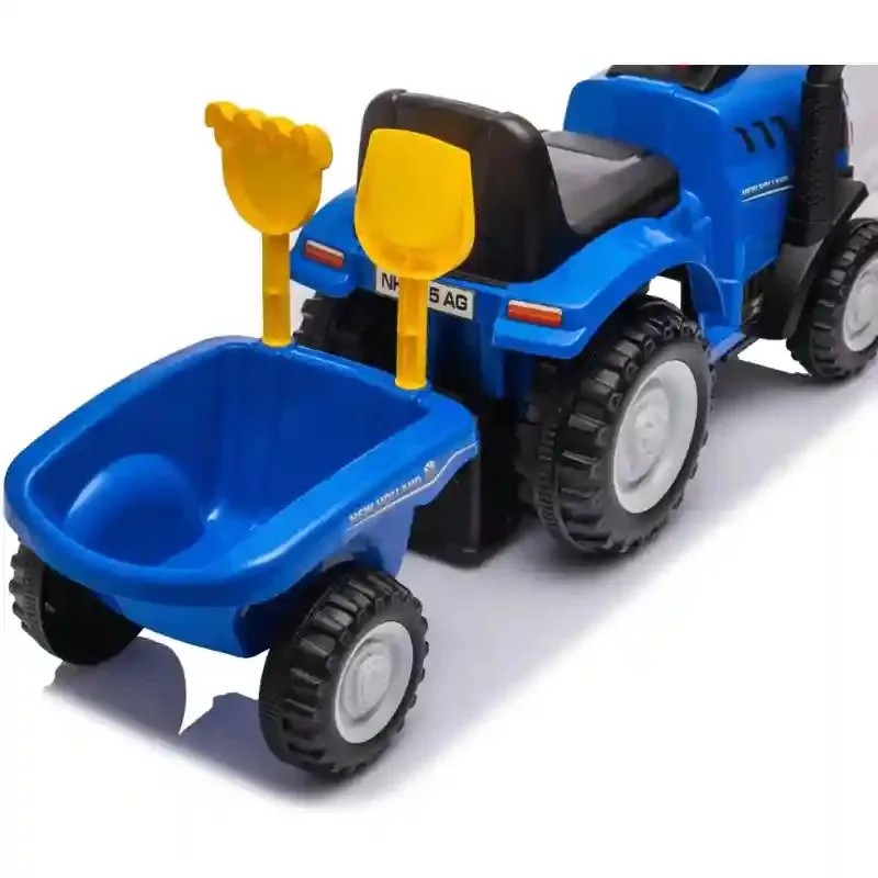 Ez a különleges, kormányozható New Holland T7 traktor bébitaxi igazi mezőgazdasági élményt nyújt a legkisebbek számára, és tökéletes választás minden kis „gazdálkodónak”. A New Holland T7 ihlette, részletgazdag kialakítás valósághű megjelenést biztosít, így a gyerekek játék közben saját farmjukat is megálmodhatják. A jármű lábbal hajtható, így segíti az önálló mozgást, miközben fejleszti az egyensúlyt és a mozgáskoordinációt. A beépített duda és fények még élethűbbé teszik a játékot, így a gyerekek teljesen beleélhetik magukat a „munkába”. A levehető pótkocsi és a mellékelt lapát és gereblye számos játéklehetőséget kínál: a gyerekek szállíthatnak, pakolhatnak vagy akár „rendbe tehetik” a saját kis gazdaságukat. Az ülés alatt és a pótkocsiban is helyet kaphatnak a játékok vagy egyéb kincsek. A strapabíró kialakításnak köszönhetően beltéren és kültéren egyaránt használható, így egész évben élvezhető. A kb. 91 × 29 × 44 cm-es méret ideális a kisebb gyermekek számára, maximális terhelhetősége 25 kg. A hangfunkciók működéséhez 2 darab AA elem szükséges, amelyeket a csomagolás nem tartalmaz. 12 hónapos kortól ajánlott, és tökéletes választás minden gyermek számára, aki szeret mozogni, felfedezni és szerepjátékokon keresztül tanulni.