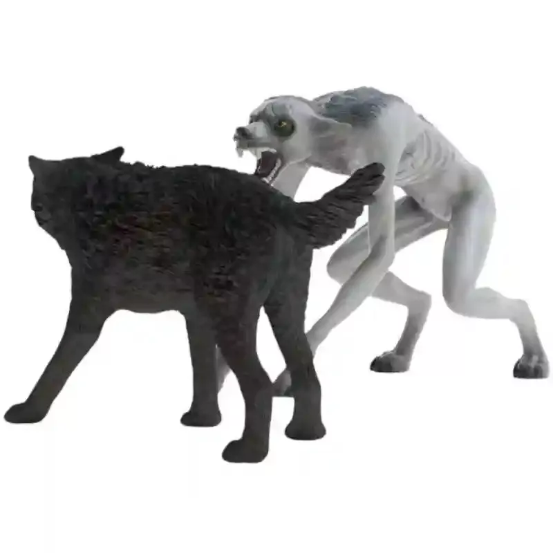 Schleich 14906 Harry Potter Fantastic Beasts - Vérfarkas vs. Animágus: a vérfarkas harcra kész, és félelmetes ellenfélként áll szemben a fekete Animágussal. Karcsú, csontvázszerű alakjával hosszú karjaival próbálja megragadni az Animágust, miközben hatalmas száját kitátva éles fogait villantja. Az Animágus erős fogai és impozáns megjelenése ellenére a vérfarkas ijesztő látványa mellett szinte ártalmatlannak tűnik. A szürkés bőr feszesen simul a csontvázszerű testre, és a vad tekintet, valamint a rémisztő morgás minden pillanatban harcra kész állapotot sugall. Ez a részletgazdag figura tökéletes kiegészítője a Harry Potter™ Legendás állatok™ világának, izgalmas játék- és gyűjtési lehetőséget kínál. A vérfarkas figura jobb mellső lába mozgatható.