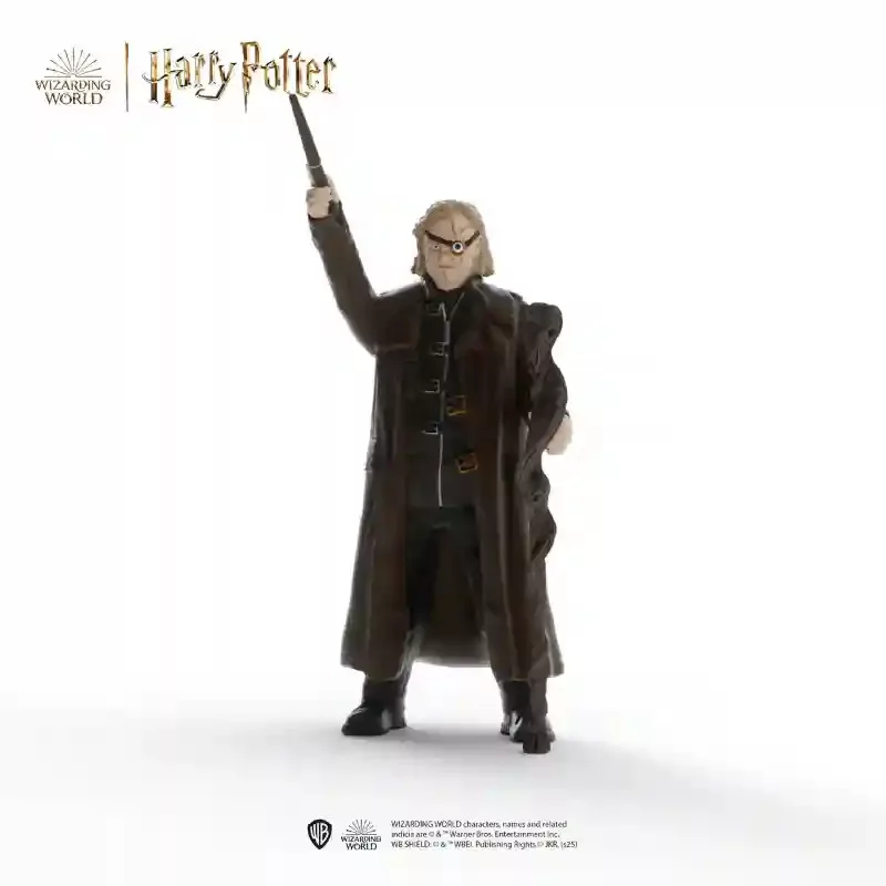 Schleich 14907 Harry Potter - Alastor „Rémszem” Mordon, Draco Malfoy görénnyel: ezzel a Harry Potter figura szettel a rajongók újraélhetik az egyik legikonikusabb pillanatot a filmekből, amikor Alastor „Rémszem” Mordon egyetlen varázsütéssel hófehér görénnyé változtatja Draco Malfoyt. Draco Malfoy pálcájával készül varázsolni, de „Rémszem” Mordon gyorsabban reagál. Egy mozdulat, egy „Bang!”, és a varázslat életre kel. Mindkét varázsló részletesen kidolgozott köpenyt és pálcát visel. A szettben megtalálható a hófehér görény figura is, hogy a gyerekek és gyűjtők újraalkothassák a híres átváltoztatást. A figurák mozgatható végtagokkal rendelkeznek, így remekül alkalmasak történetmeséléshez, varázsjátékhoz vagy díszítéshez Harry Potter-rajongók polcán.