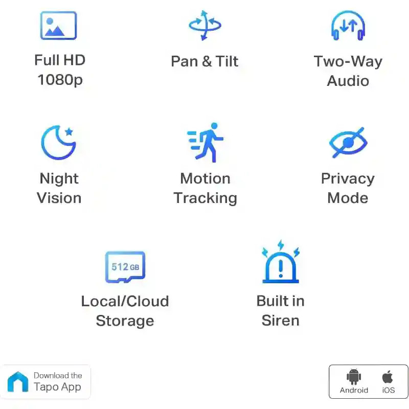 Ez a Full HD 1080P felbontású WiFi megfigyelőkamera kristálytiszta képet biztosít, így minden részletet rögzíthet. A 360°-os vízszintes és 114°-os függőleges elforgatási képesség révén teljes szobafedést nyújt – ideális otthoni használatra. (Csak 2,4 GHz-es WiFi hálózattal kompatibilis!) Azonnali értesítést kap a Tapo alkalmazáson keresztül, ha a kamera mozgást észlel. Aktiválható fény- és hangriasztás is, hogy elriassza a nem kívánt látogatókat. Sötétben is megbízhatóan működik: akár 10 méteres éjjellátó hatótávolság! A beépített mikrofon és hangszóró segítségével távolról is kommunikálhat – ideális például gyermek vagy házi kedvenc felügyeletéhez. Akár 512 GB-os microSD-kártyára (nem tartozék!), vagy felhőalapú (fizetős!) tárhelyre mentheti a felvételeket. Az Adatvédelmi mód aktiválásával fizikailag lezárható a kameraobjektív, így extra védelmet biztosít a magánéletének. Ideális választás otthoni biztonság, gyermekfelügyelet vagy kisállatok megfigyelése céljából.