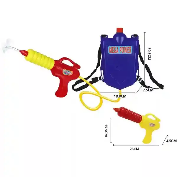 A vízipisztoly tökéletes szabadtéri játék gyerekeknek. A fegyver átlagos lőtávolsága kb. 10 méter. A fegyver tartályát a nyíláson keresztül feltöltve (kb. 2 liter), majd a cső pumpálásával indulhat a vízi csata.