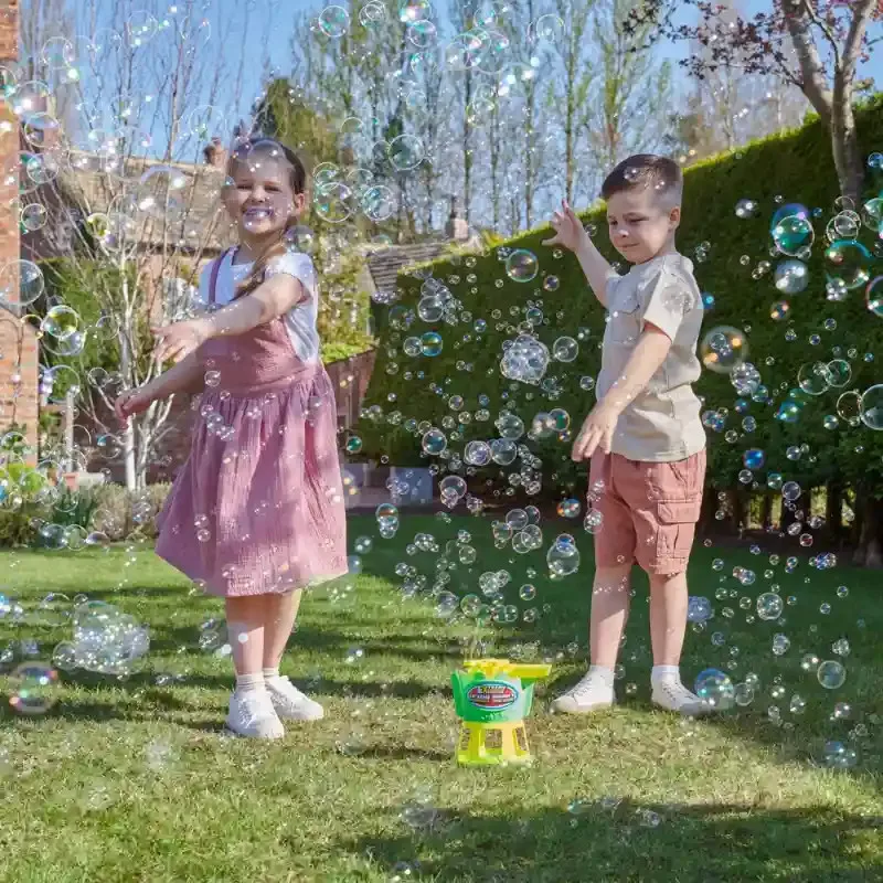 Ez a praktikus, elektromos Wanna Bubbles Extreme buborékfújó gép folyadékkal készlet garantáltan feldobja a szabadtéri játékokat, hiszen rövid idő alatt rengeteg szappanbuborékot hoz létre. A 10 forgó buborékfújó pálcának köszönhetően folyamatosan képződnek a buborékok, amelyek akár 10 méter magasra is felszállhatnak. A készülék akár 25 000 buborékot is előállít 5 perc alatt, így ideális választás kerti játékhoz, születésnapokhoz vagy bármilyen vidám eseményhez. A használata rendkívül egyszerű: csak töltsd fel a mellékelt buborékfolyadékkal, majd egy gombnyomással indíthatod vagy állíthatod le a működést. A kompakt, kb. 20 × 19 × 15 cm-es méret könnyű kezelhetőséget és egyszerű elhelyezést biztosít. A csomag tartalmazza a buborékfújó gépet és 118 ml buborékfolyadékot, így azonnal használatra kész. A működéshez 4 darab AA elem szükséges, amelyeket a csomagolás nem tartalmaz. 3 éves kortól ajánlott, és tökéletes választás minden gyermek számára, aki szereti a látványos, aktív és vidám szabadtéri játékokat. Rendeljen hozzá rögtön folyadék utánpótlást is, amit itt talál: buborékfújó folyadékok