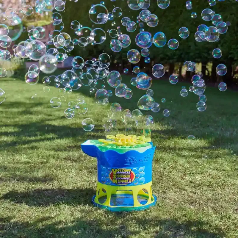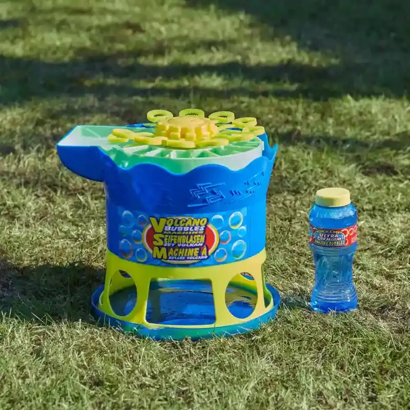 Ez az elektromos Wanna Bubbles Volcano buborékfújó gép folyadékkal készlet lenyűgöző látványt és rengeteg szórakozást kínál a szabadban, hiszen rövid idő alatt hatalmas mennyiségű szappanbuborékot képes létrehozni. A 12 forgó buborékfújó pálcának köszönhetően folyamatosan újabb és újabb buborékok keletkeznek, amelyek akár 9 méter magasra is felszállhatnak. A készülék akár 100 000 buborékot is képes előállítani 10 perc alatt, így ideális választás kerti partikhoz, születésnapokhoz vagy bármilyen szabadtéri eseményhez. A használata rendkívül egyszerű: csak töltsd fel a mellékelt buborékfolyadékkal, majd egy gombnyomással indíthatod és állíthatod le a működést. A kb. 26 × 23 × 22 cm-es méret stabil működést és könnyű elhelyezést biztosít. A csomag tartalmazza a buborékfújó gépet és 236 ml buborékfolyadékot, így azonnal használatba vehető. A működéshez 10 darab AA elem szükséges, amelyeket a csomagolás nem tartalmaz. 3 éves kortól ajánlott, és tökéletes választás minden gyermek számára, aki szereti a látványos, vidám és aktív szabadtéri játékokat. Rendeljen hozzá rögtön folyadék utánpótlást is, amit itt talál: buborékfújó folyadékok