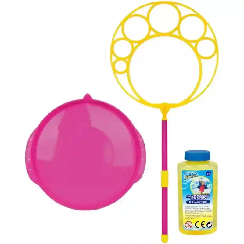 Ezzel a buborékfújó karika szettel a gyerekek könnyedén varázsolhatnak különböző méretű, csillogó szappanbuborékokat, és élvezhetik a gondtalan szabadtéri játék örömét. A készlet mindent tartalmaz, ami a játék azonnali elkezdéséhez szükséges, így nincs más teendő, csak belemártani a karikát és már indulhat is a buborékfújás. A praktikus tálcának köszönhetően a buborékoldat könnyen használható, így a gyerekek egyszerűen és tisztán tudják újra és újra megtölteni a karikát. A szett ideális választás kerti játékhoz, kirándulásokhoz, vagy akár születésnapi bulikhoz is, ahol garantált a vidám hangulat. A készlet tartalmaz egy buborékfújó karikát, egy tálcát és egy használatra kész buborékoldatot. A készletben 250ml folyadék is található, hogy rögtön indulhasson is a móka. Rendeljen hozzá rögtön folyadék utánpótlást is, amit itt talál: buborékfújó folyadékok