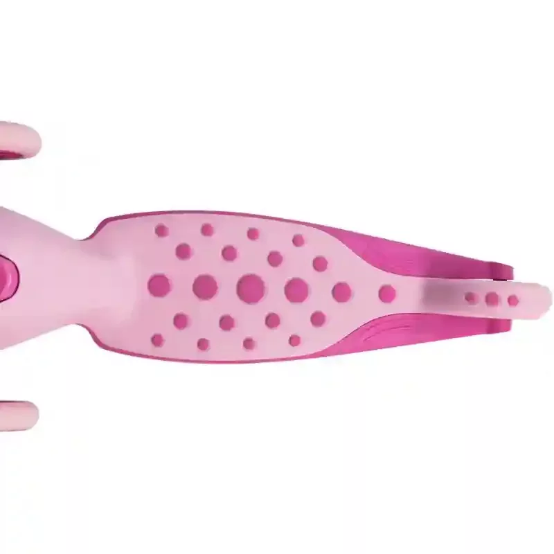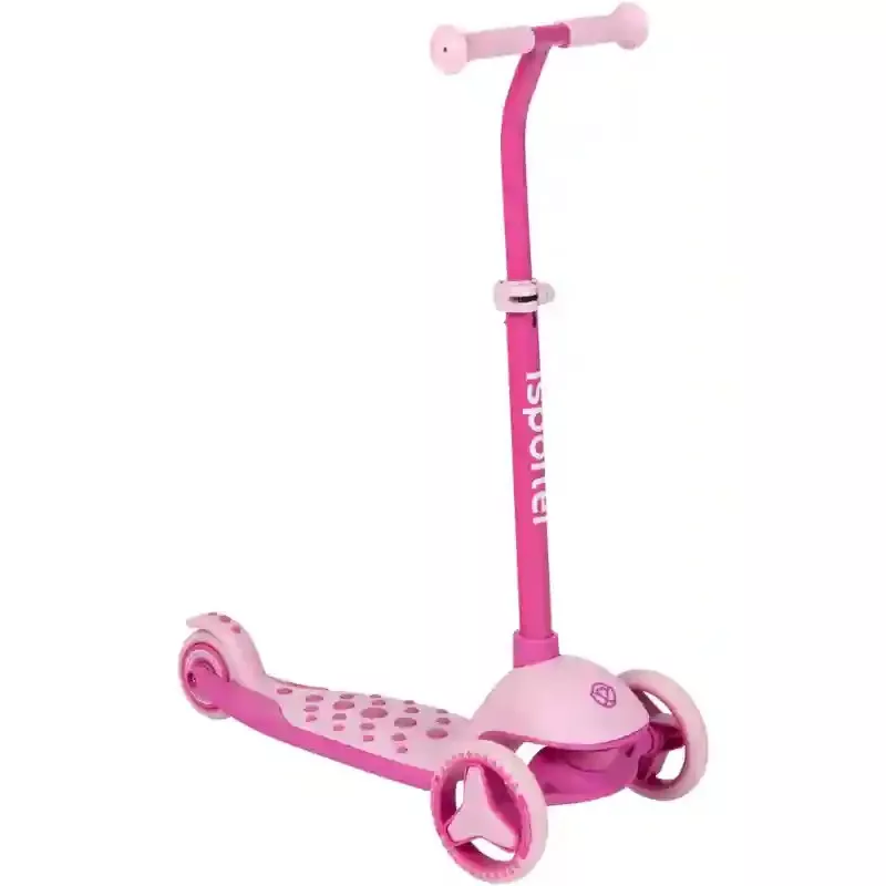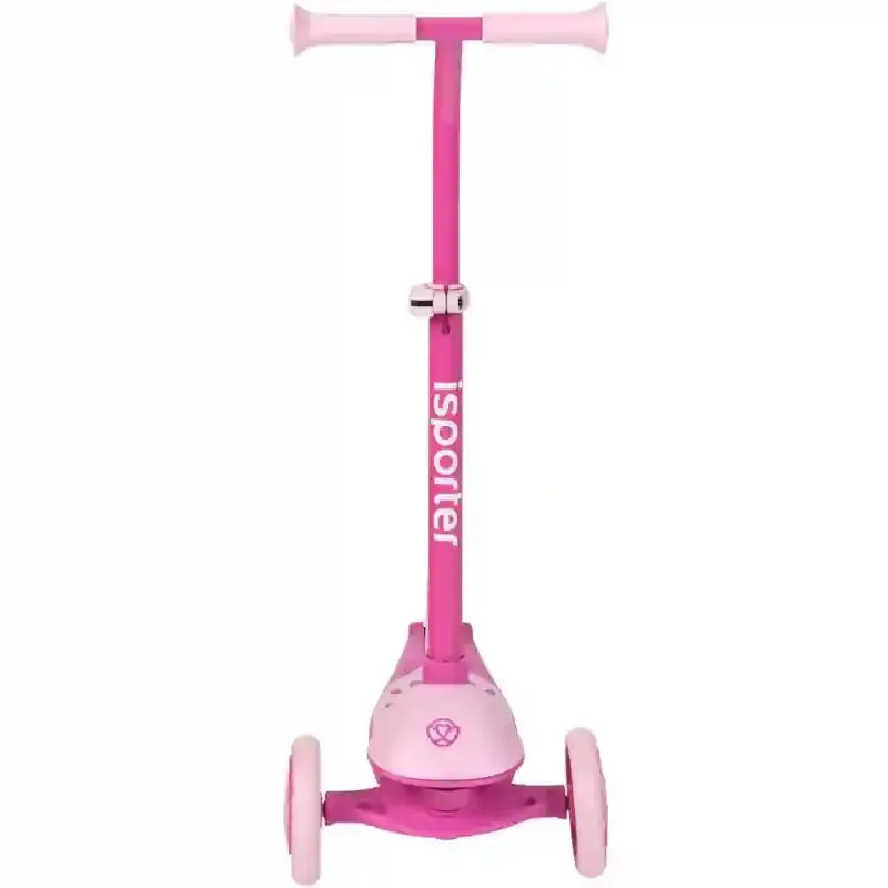 Ez a vidám, pink színű iSporter fémvázas háromkerekű gyerek roller tökéletes első jármű a legkisebbek számára, amely játékosan vezeti be őket a rollerezés világába. A könnyű, mégis strapabíró alumínium váz biztosítja a stabilitást, miközben könnyen kezelhető marad a gyerekek számára. A háromkerekű kialakítás extra biztonságot nyújt, így már egészen fiatal korban is magabiztosan használható. A nagy első kerekekbe (kb. Ø12 cm) épített színes LED fények mozgás hatására világítanak, ami nemcsak látványos, hanem még élvezetesebbé teszi a gurulást. A széles, csúszásmentes fellépőfelület stabil tartást biztosít, így a gyerekek biztonságosan állhatnak rajta használat közben. A magasságban állítható kormány 61,5 és 71,5 cm között a gyermek növekedéséhez igazítható, míg a puha, kényelmes markolatok segítik a biztos fogást. A széles hátsó fék gyors és hatékony megállást tesz lehetővé, így a gyerekek mindig kontroll alatt tarthatják a rollert. Az ABEC-5 csapágyak sima és könnyed haladást biztosítanak, így a roller ideális választás járdára, udvarra vagy parkba. Ez a háromkerekű roller nemcsak szórakoztató, hanem segíti az egyensúlyérzék, a koordináció és az önbizalom fejlődését is, így tökéletes társ a mindennapi mozgáshoz és játékhoz.